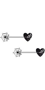 14G Green Bat Dangle Nipple Rings for Women 316L Stainless Steel Glow-In-The-Dark Nipplerings Nipple Studs Barbell Halloween Statement Nipple Piercing Jewelry