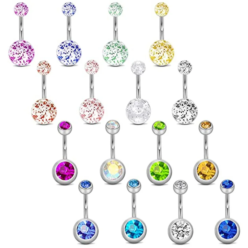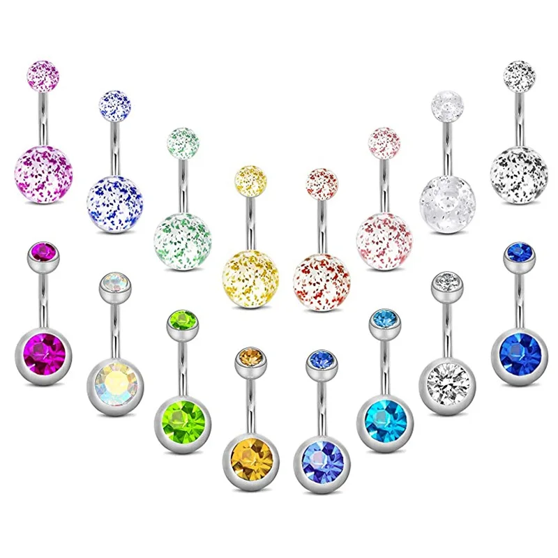 • Standard Size--14G Belly Button Rings,Common Belly Piercing Size. Fit Most Adults. Easy To Insert And Slip Off. Bar Thickness: 14 Guage (1.6mm),Bar Length is 3/8" (10mm),Top Ball Diameter: 5mm, Bottom Ball Diameter: 8mm