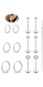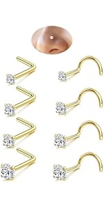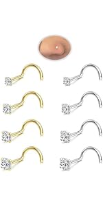 8Pcs 18G Nose Rings Hoops Set for Women Men: Hypoallergenic Gold/Silver 316L Surgical Stainless Steel Nose Hoops Hinged Clicker Septum Rings for Nose Cartilage Body Piercing Jewelry 6mm 7mm 8mm 9mm