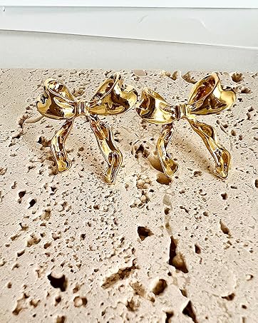 Earrings for Women Girls, 18K Gold Plated Bow Stud Earrings Dangle Drop Earrings Gold Earrings for Women Girls Trendy Aretes de Mujer Gold Jewelry Chritsmas Gifts for Her Teens