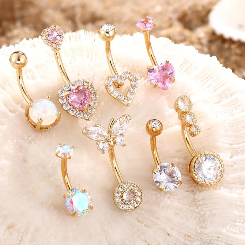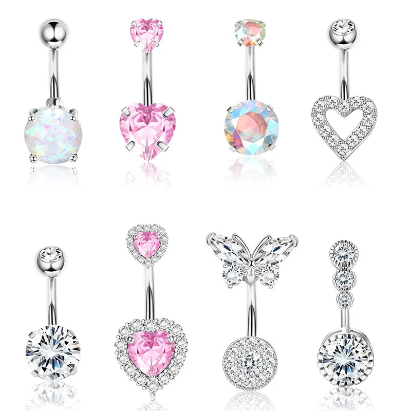 Hot Sale 8 Pieces Butterfly Umbilical Cord Ring Pendant Heart Shape Micro-inlaid Zircon Stainless Steel Fashion Piercing