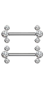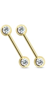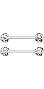 14G Implant Grade Titanium Internally Threaded Bezel Set Crystal Nipple Barbells
