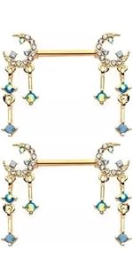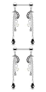 Crystal Star and Moon Chain Dangle Nipple Barbells