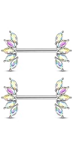14GA Stainless Steel Crystal Marquise Fan Ends Nipple Barbells