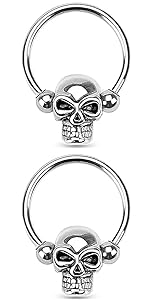 14GA Surgical Steel Skull Captive Bead Nipple Rings