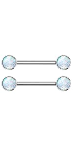 14G Implant Grade Titanium Internally Threaded Synthetic Opal Nipple Barbells