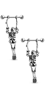16G Stainless Steel Hanging Skeleton Nipple Barbells
