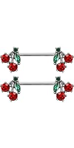 14GA Stainless Steel Crystal Red Cherry Ends Nipple Barbells