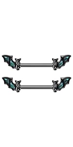 14GA Black PVD Plated Stainless Steel Bat with Abalone Wings Nipple Barbells