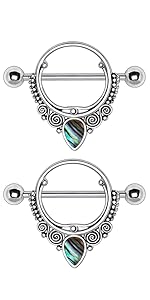 Stainless Steel Abalone Teardrop Ornate Nipple Shields