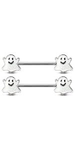 14GA Stainless Steel Happy Little Ghost Ends Nipple Barbells