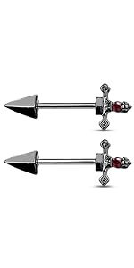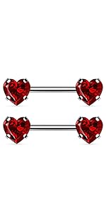 14GA 316L Stainless Steel Red Gem Set Dagger Nipple Barbells