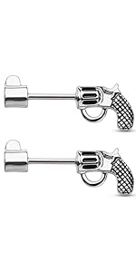 14G Stainless Steel Revolver Pistol Nipple Barbells